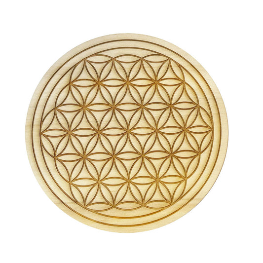 Plaque Rechargement Fleur de Vie Bois Sculpté - Lithothérapie