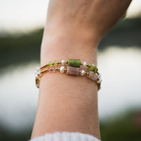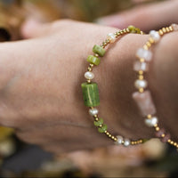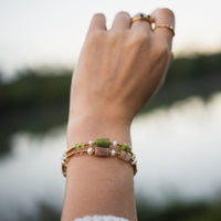 Un bijou fin et ajustable, composé de pierres naturelles et de perles d'eau douce. Minimaliste et élégant, il sublime ton poignet tout en diffusant une énergie subtile.