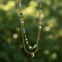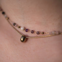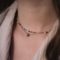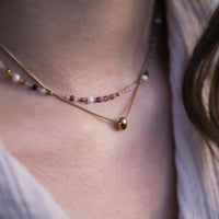 Un bijou fin et vibrant, composé de perles de tourmaline aux teintes roses, noires, violettes et orangées. Chaque couleur révèle une facette unique : protection, douceur, énergie et créativité. Minimaliste et élégant, il illumine ton décolleté tout en diffusant une énergie équilibrante.